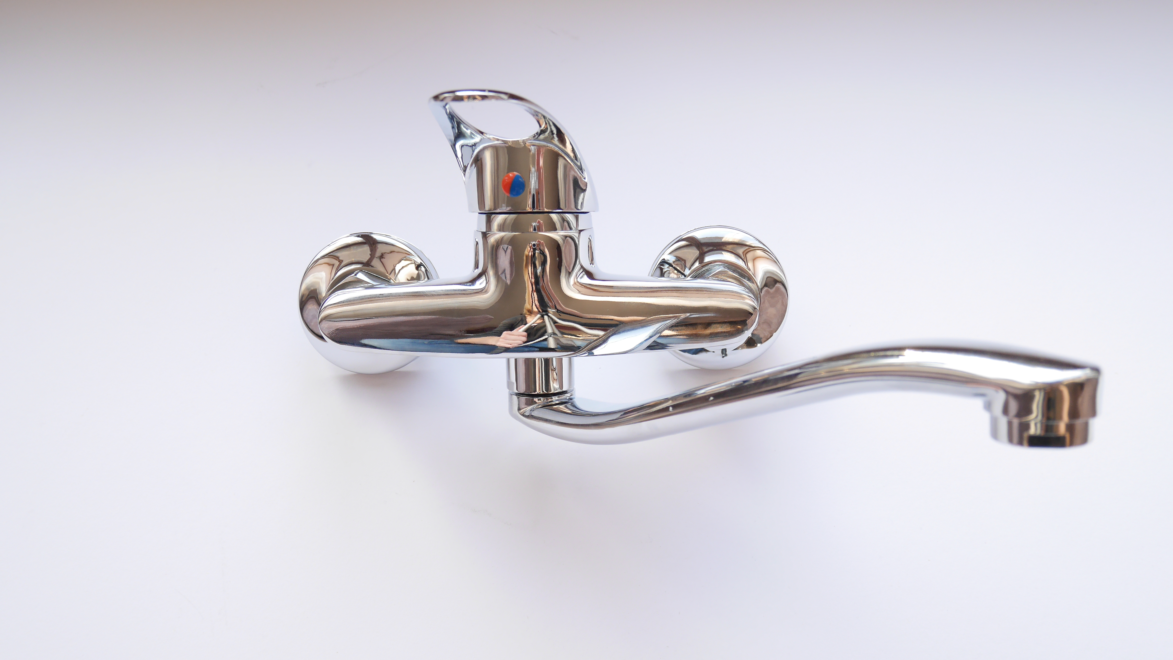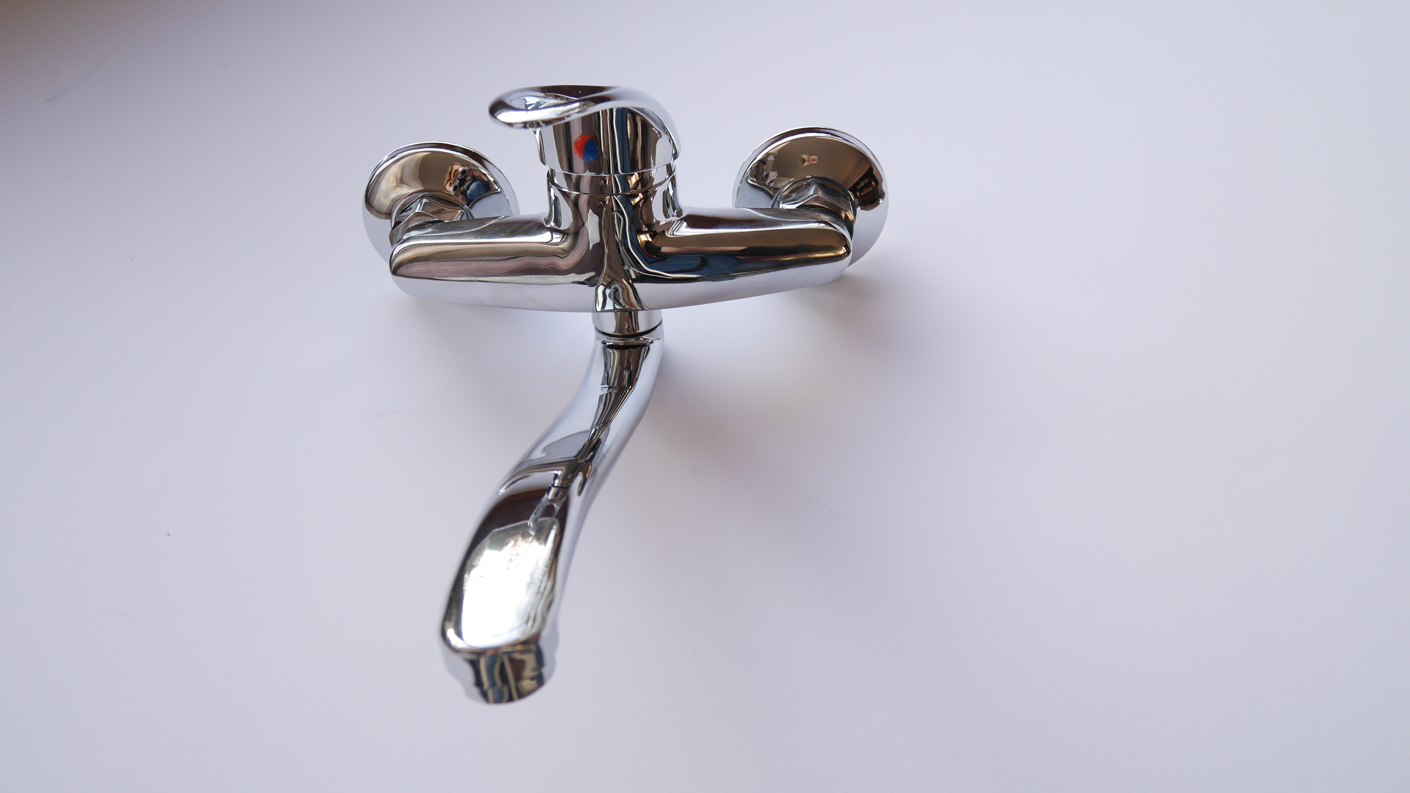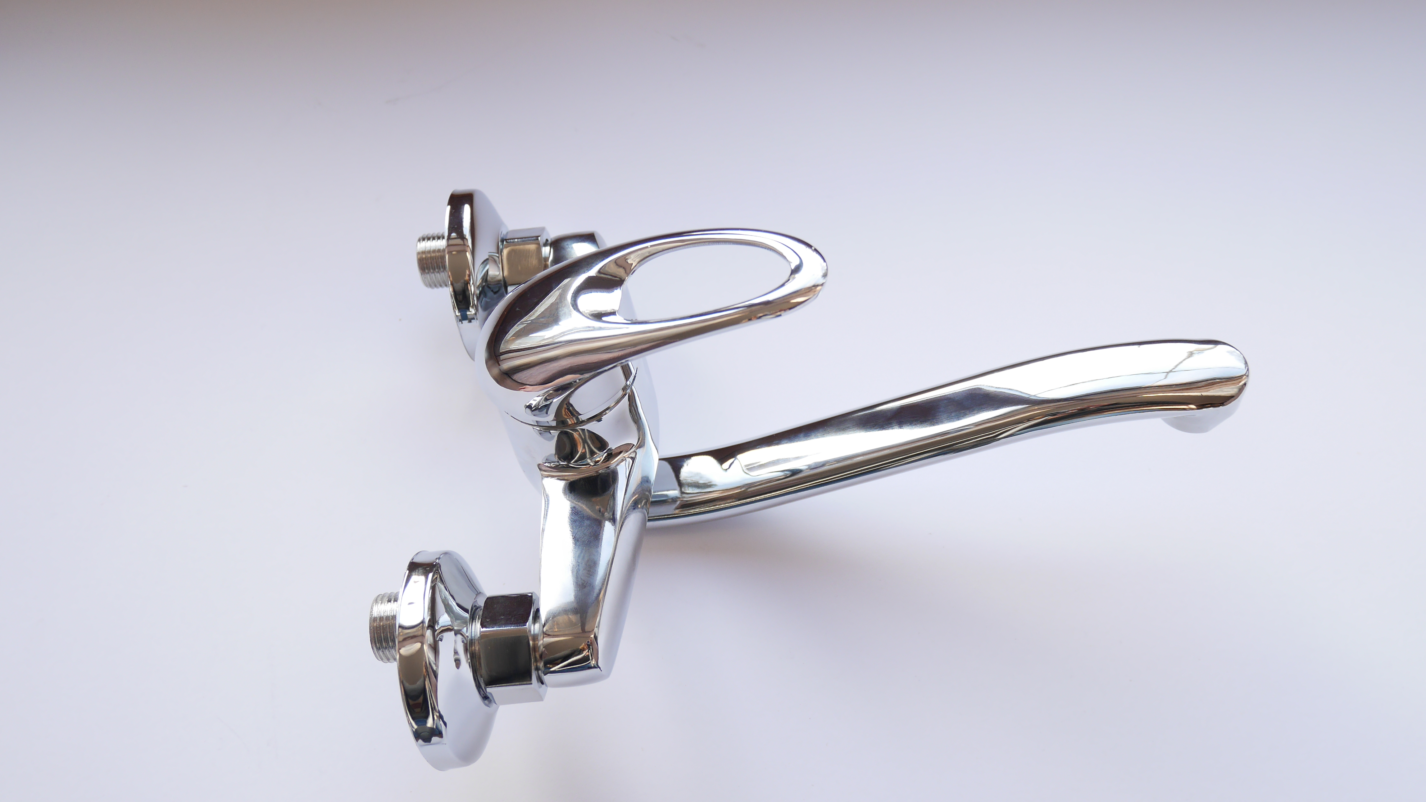 Bateria jednouchwytowa ścienna, kuchenna , solidnie wykonana, odlew z mosiądzu, w kolorze Chrom/Połysk z możliwością dobrania wylewki rożnej długości, w zestawie do montażu są rozety i krzywki