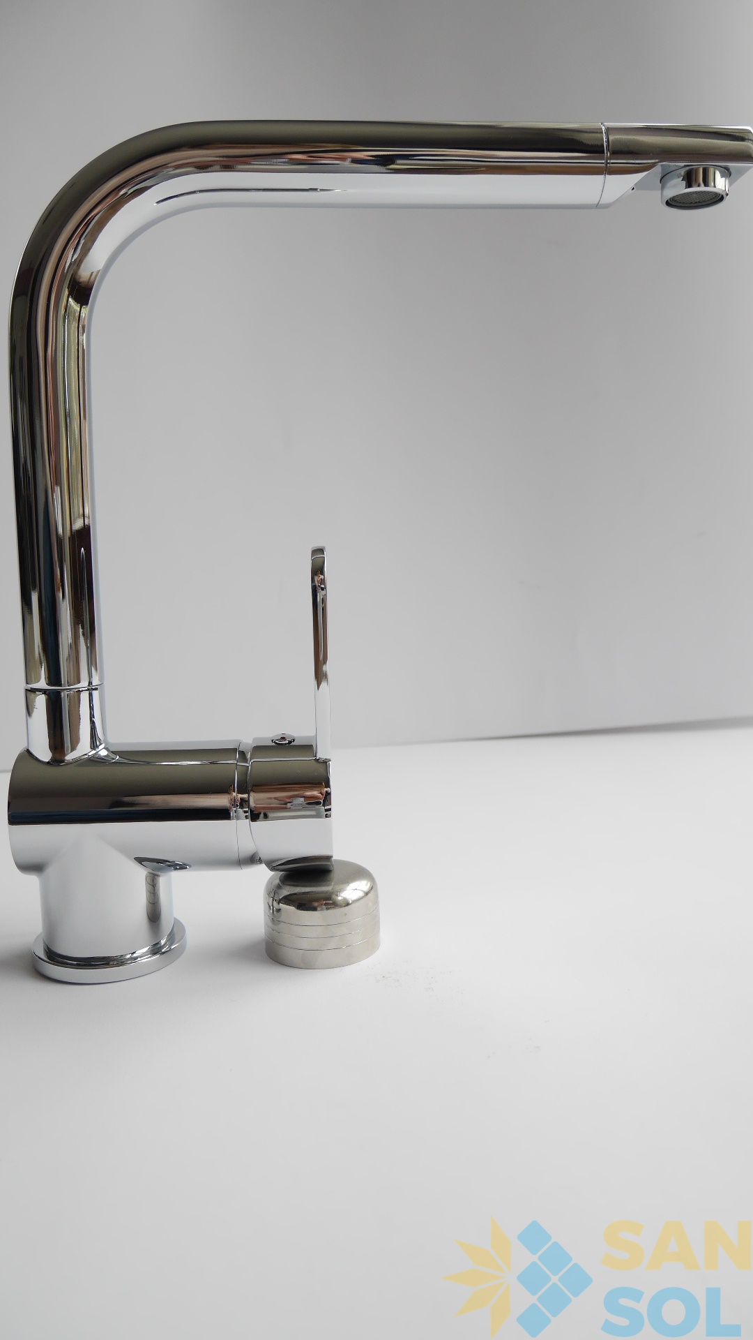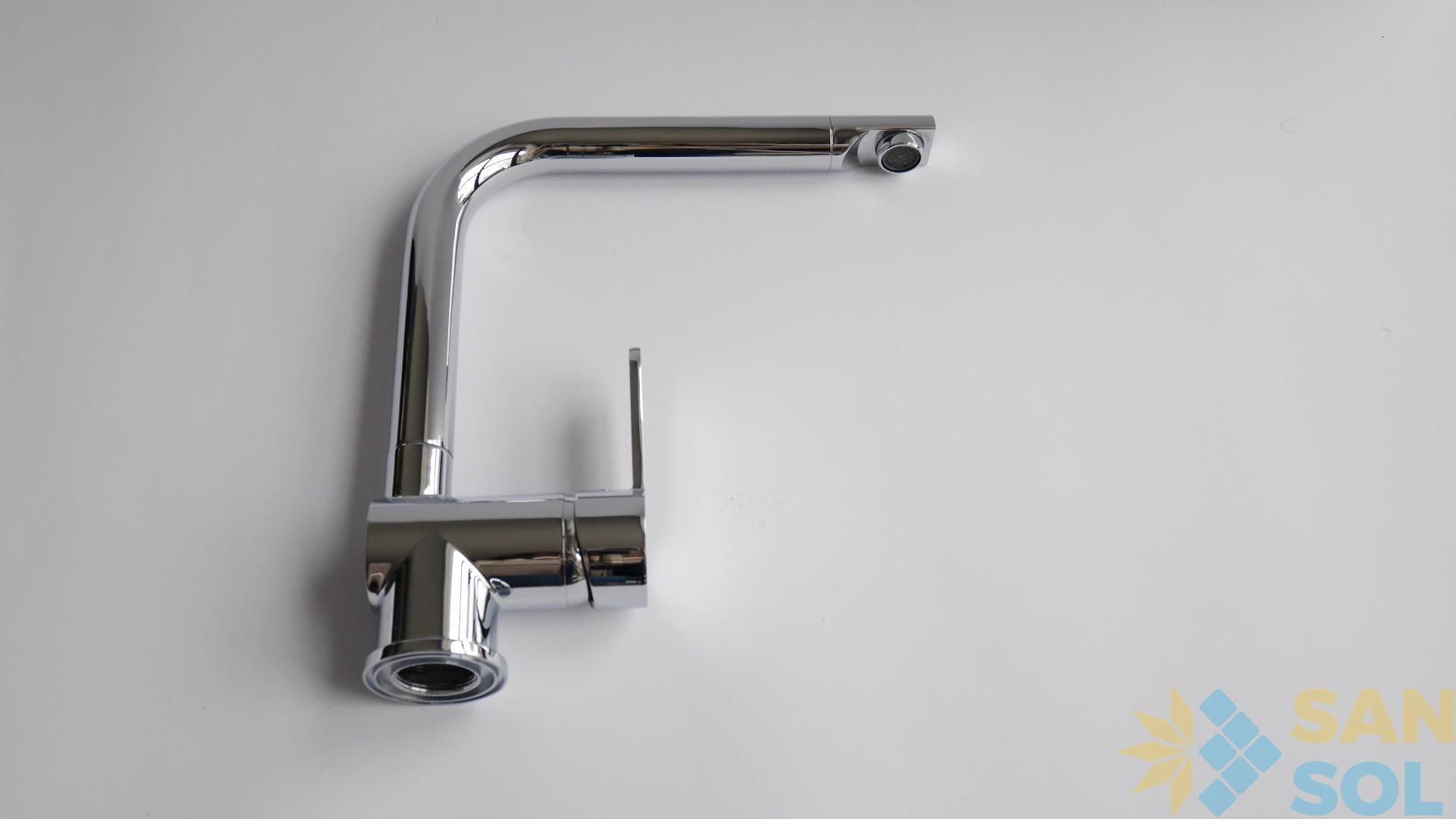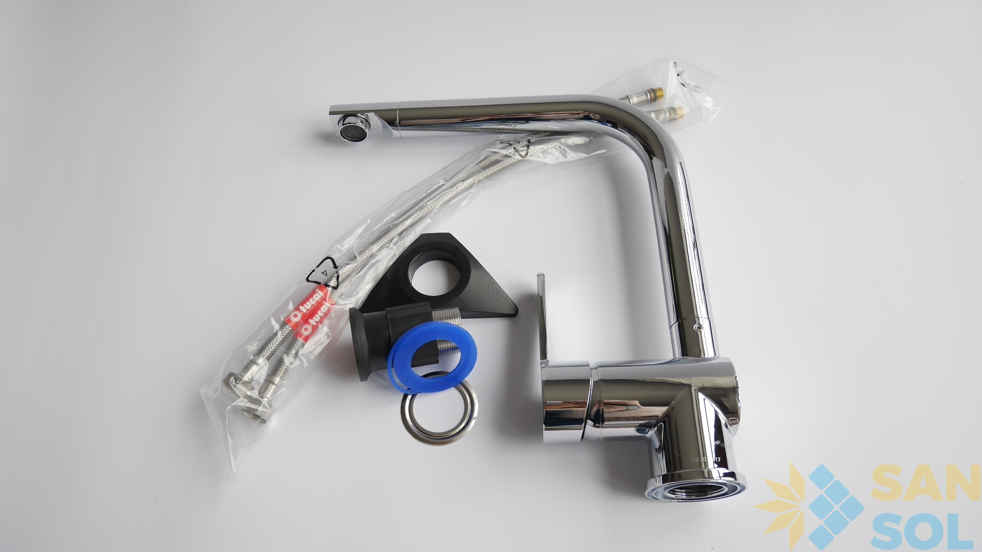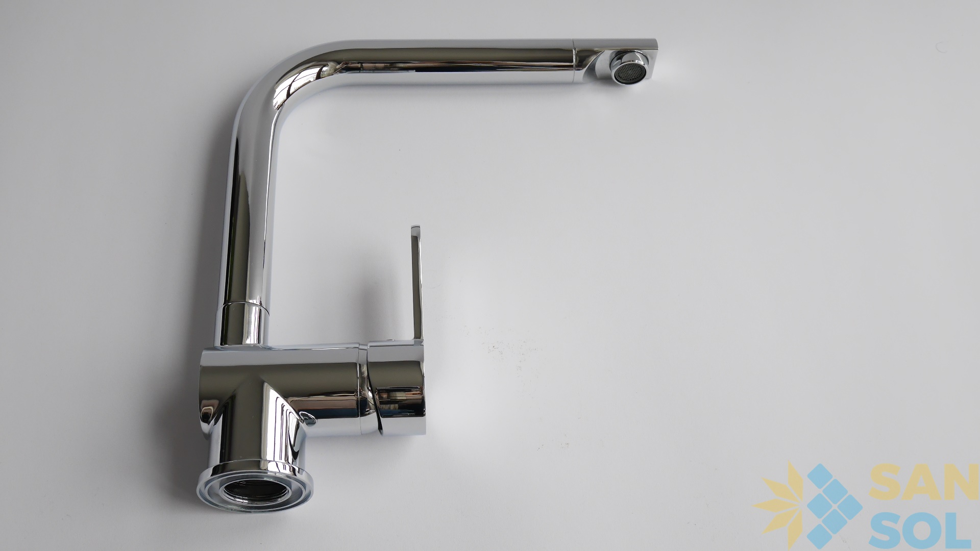 BATERIA KUCHENNA STOJĄCA jednouchwytowa SANMIX SANITOP WINGENROTH, wykonana ze stali, w kolorze CHROM/POŁYSK. w komplecie z wężykami i mocowaniami. Produkt najwyższej niemieckiej jakości , 60 miesięcy gwarancji.