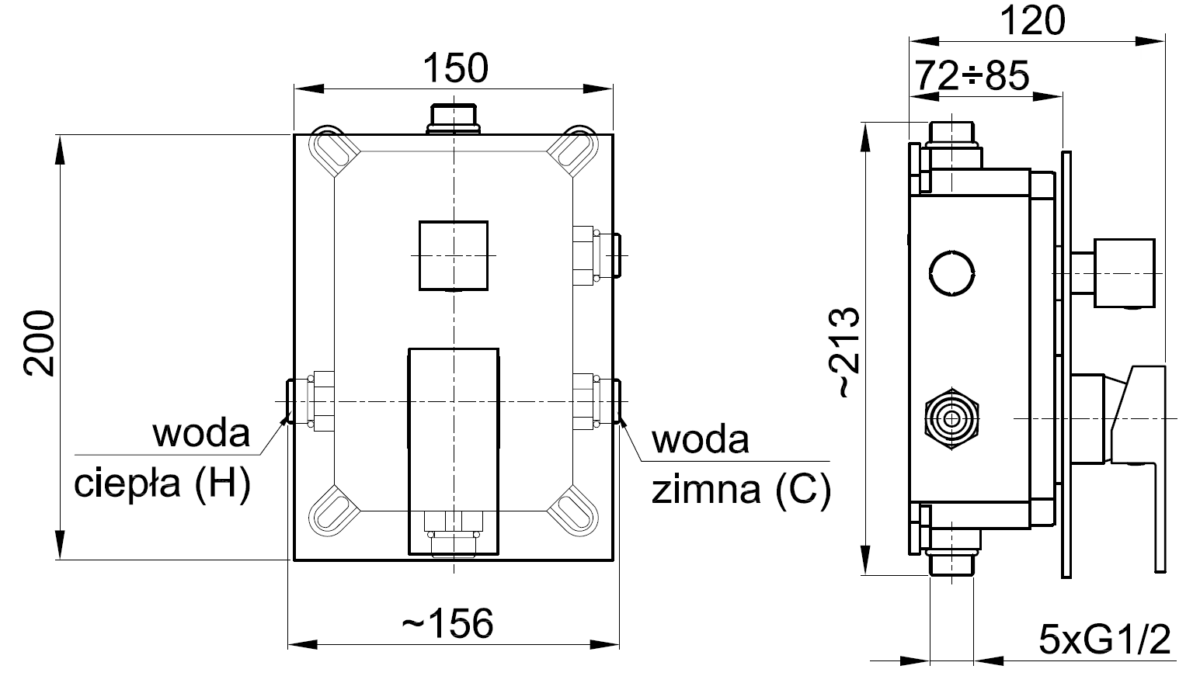 - Opakowanie zawiera baterię, rozetę maskującą, uchwyt regulatora, uchwyt przełącznika, instr. montażu i obsługi baterii podtynkowej typu BOX z gwarancją,