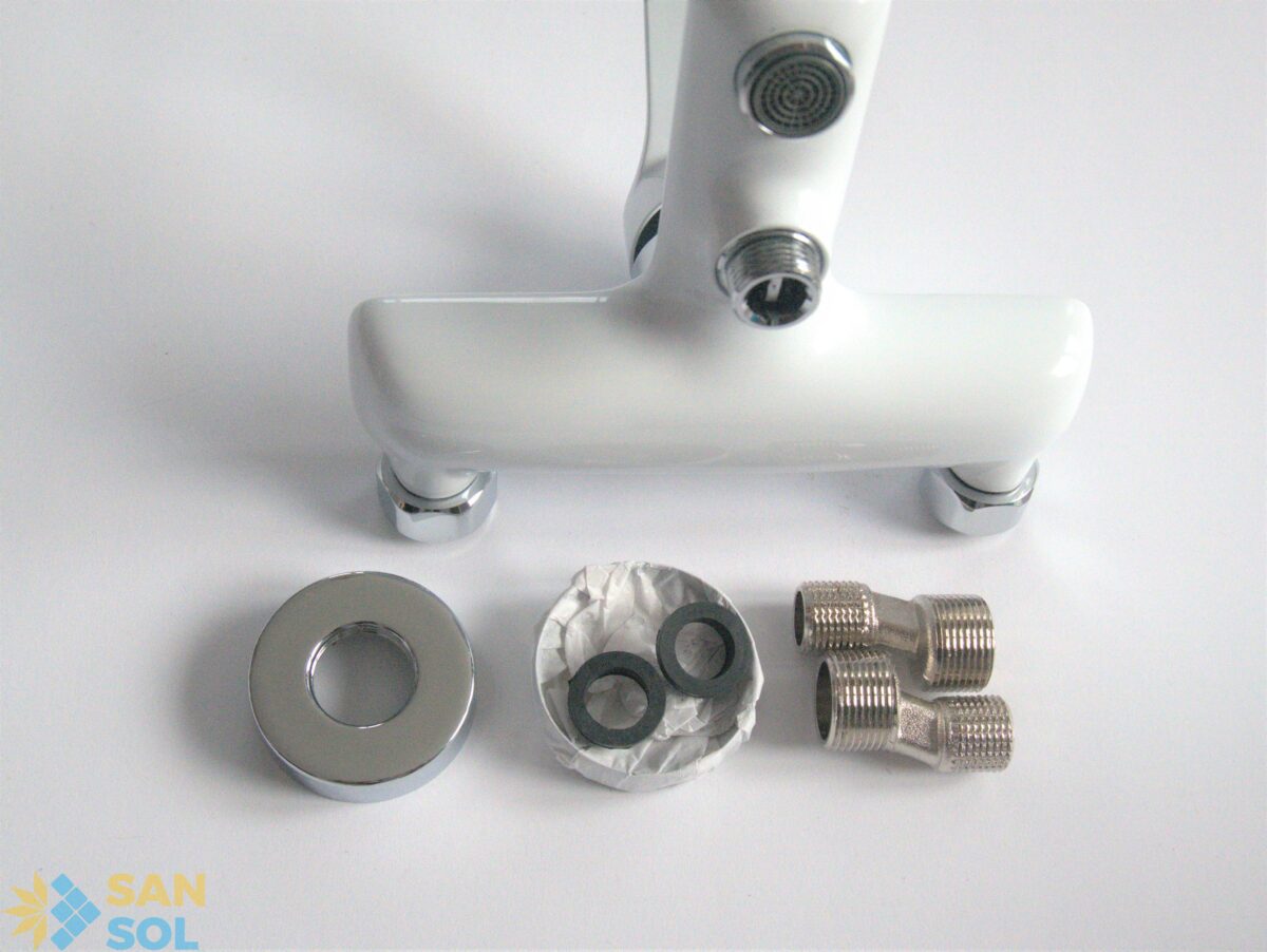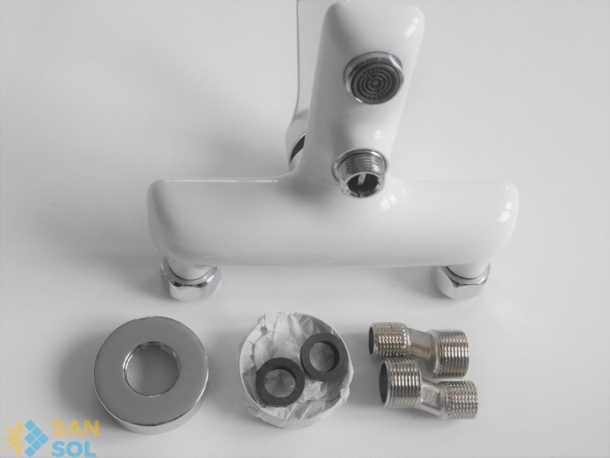 - Bateria wannowa ścienna w kolorze chromu i białego