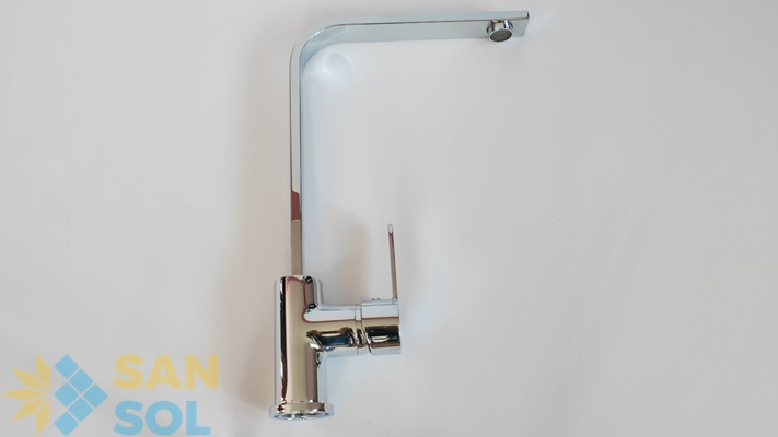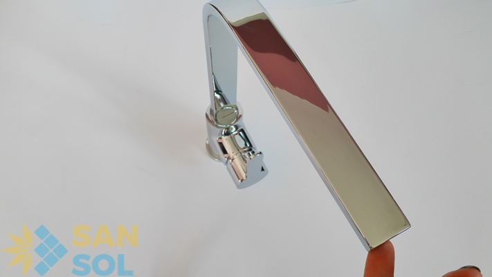Bateria zlewozmywakowa stojąca SAL, kanciasta, bardzo nowoczesny wygląd. Bateria jednouchwytowa, wysoka, umożliwia wygodne użytkowanie w kuchni.