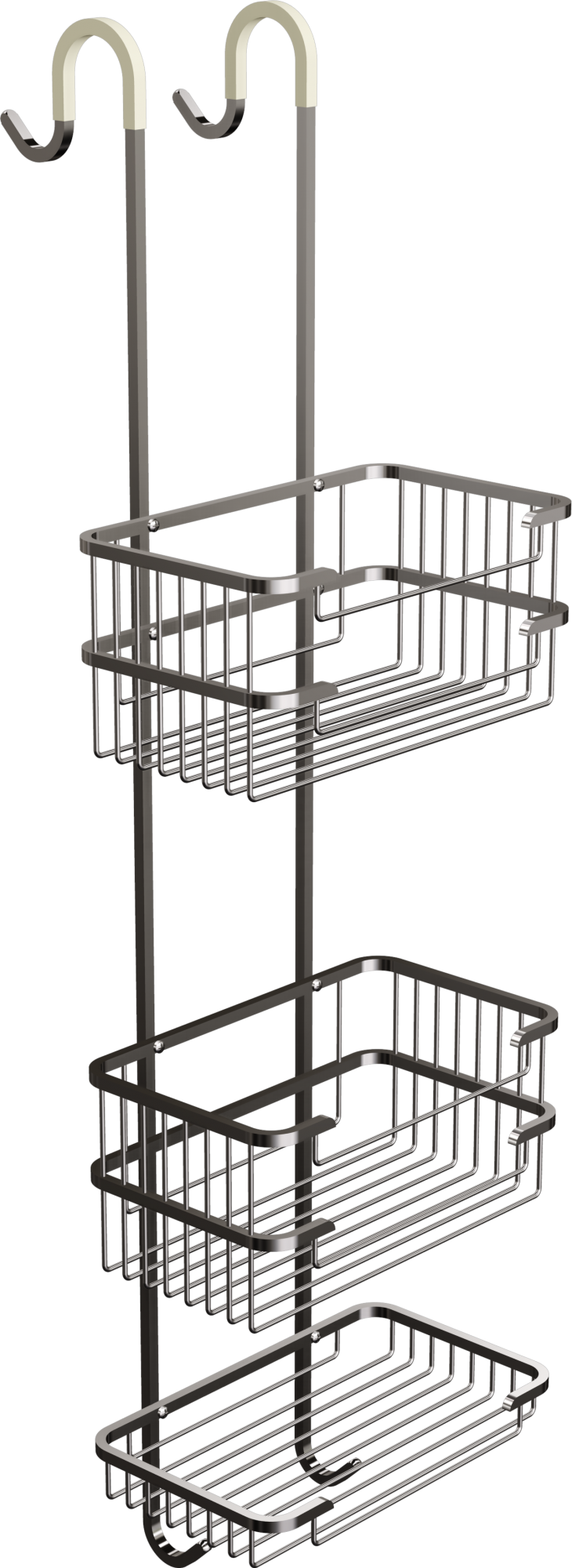 KOSZ PRYSZNICOWY POTRÓJNY, wykonany z mosiądzu, w kolorze CHROM/POŁYSK, o wymiarach 210 mm x 211 mm x 740 mm , bardzo trwały produkt, odporny na korozję, z dodatkowymi wieszakami np. na ręczniki, szlafroki.