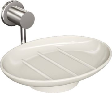 MYDELNICZKA Plastikowa Biała Andex, wykonana z mosiądzu, w kolorze chrom/połysk, wkład plastikowy biały, o wymiarach:130 mm x 130 mm x 72 mm, klasyczny prosty wygląd i forma.