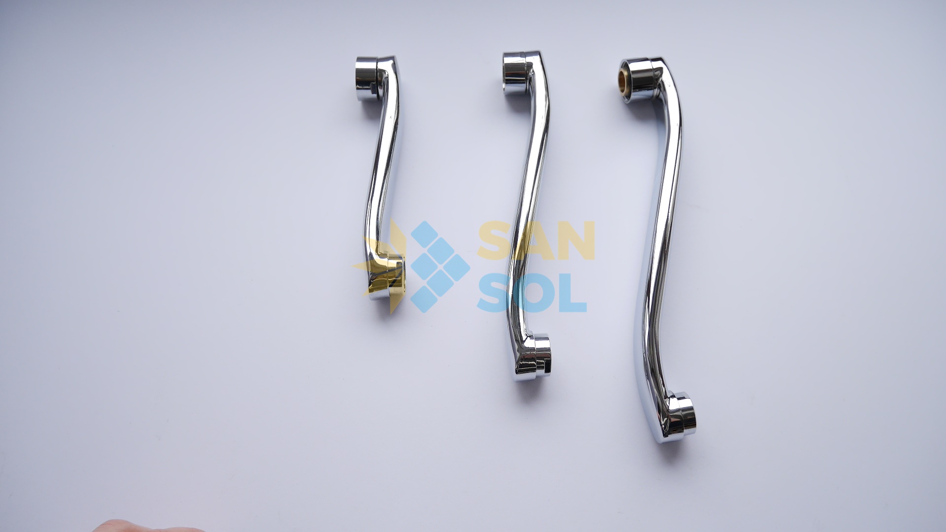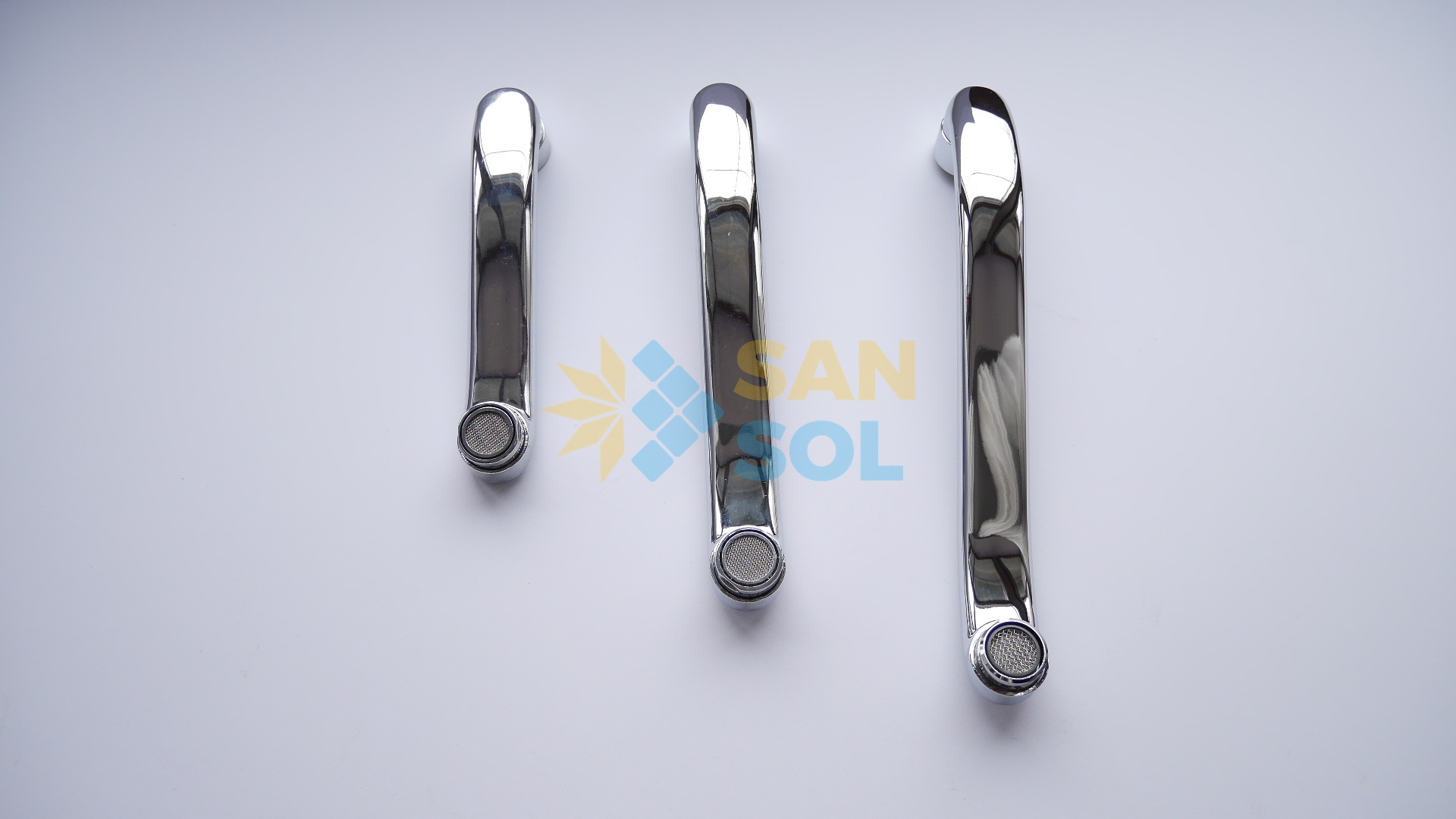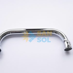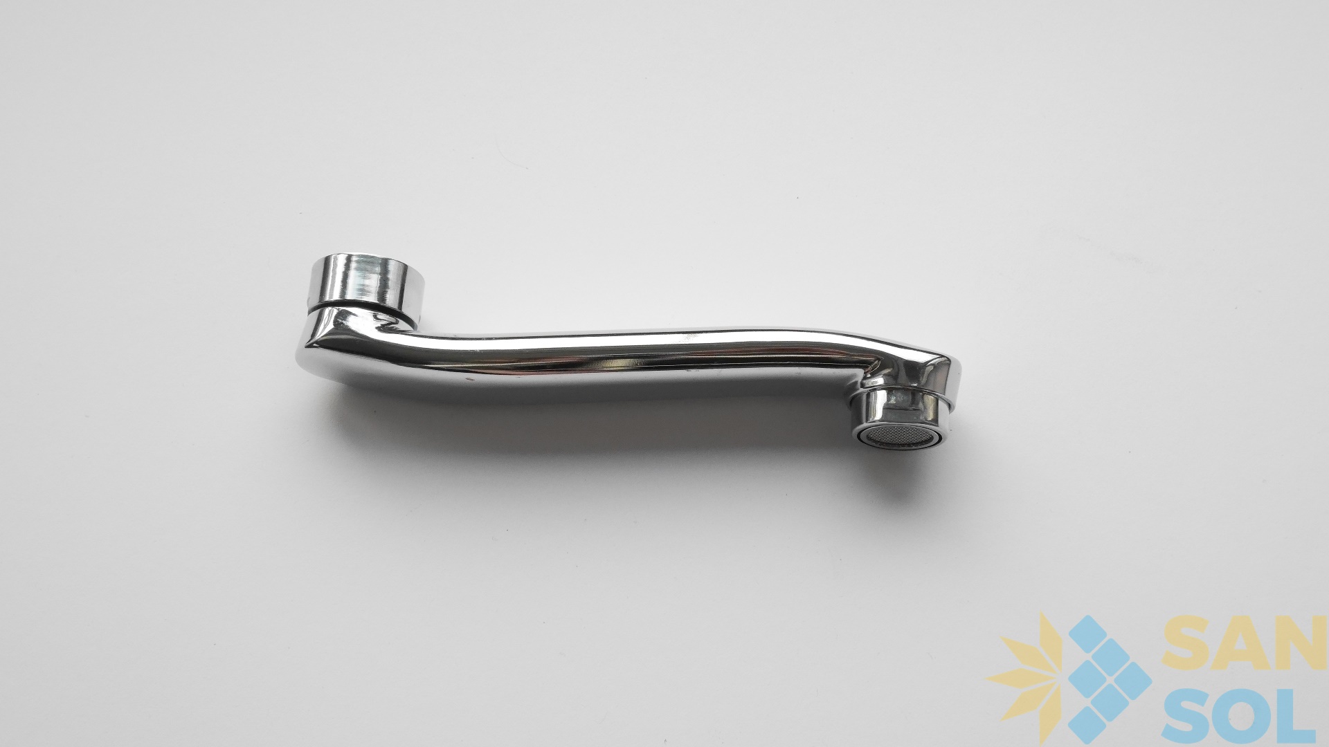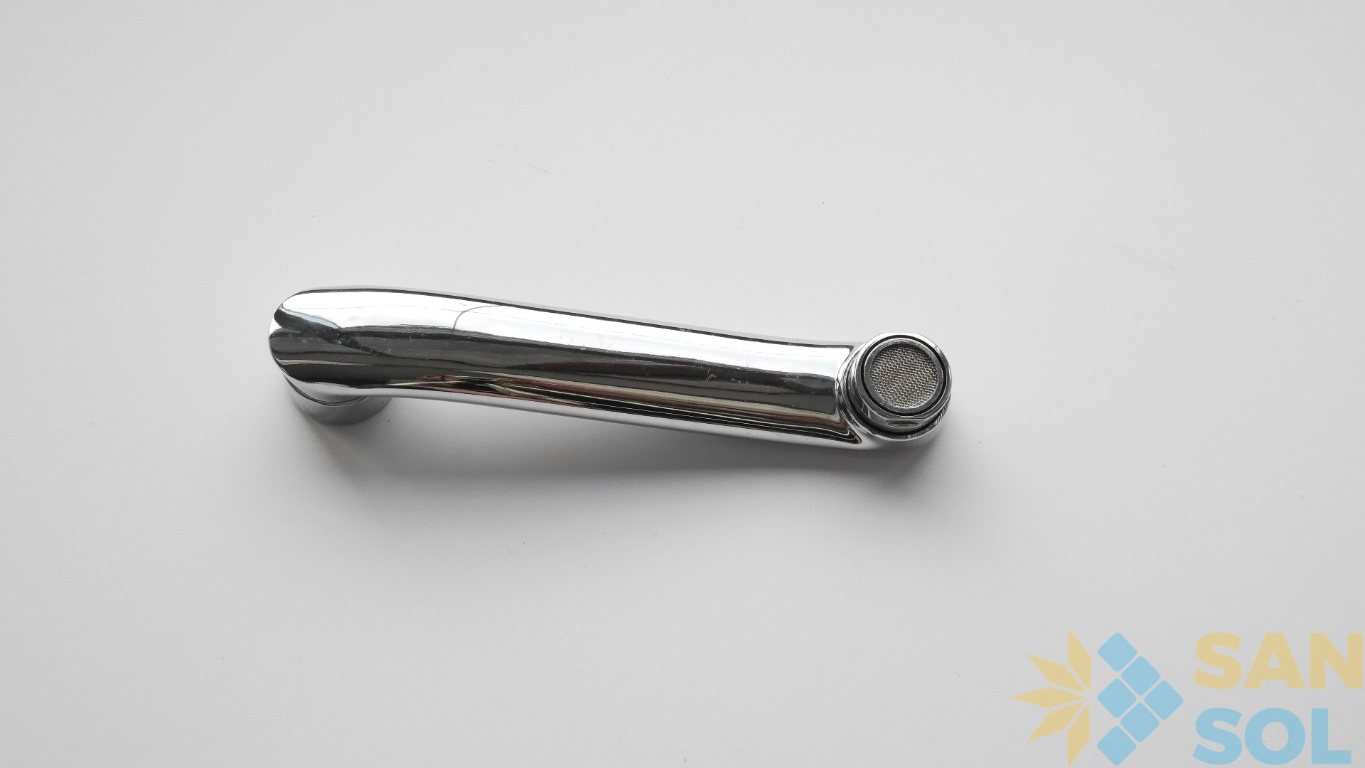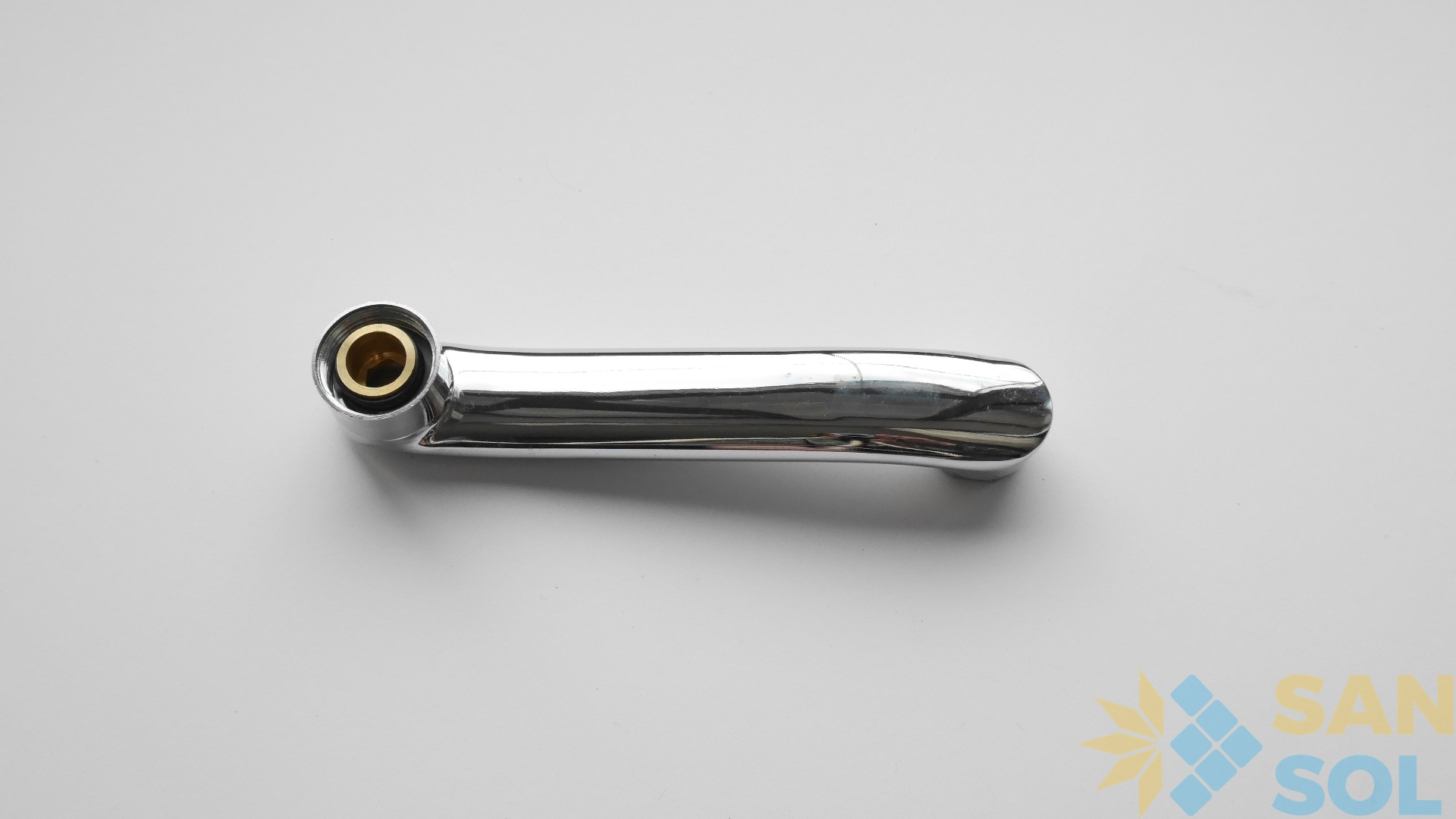 Wylewka podgięta do baterii jednouchwytowych o długości 12 cm, wykonana z mosiądzu, w kolorze CHROM/POŁYSK i gwincie 3/4 cala