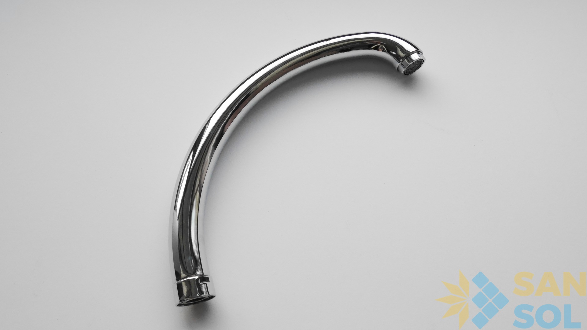 Wylewka rurkowa profilowana do baterii jednouchwytowych o długości 27 cm, gwincie 3/4 cala, wykonana z mosiądzu, w kolorze CHROM/POŁYSK